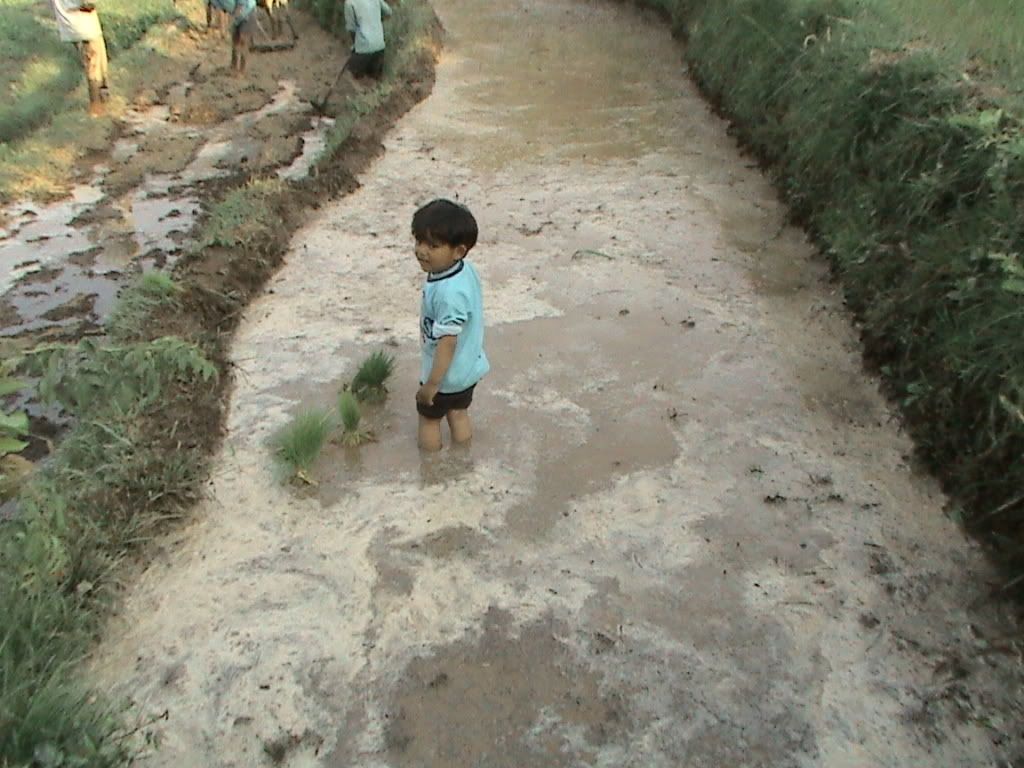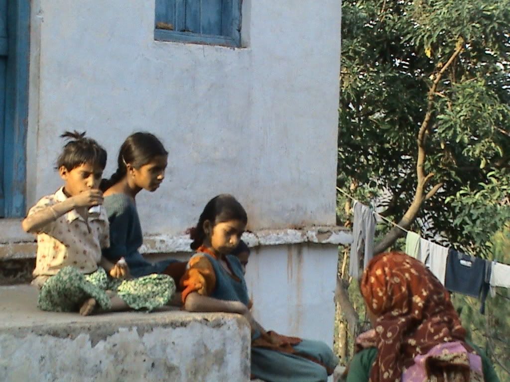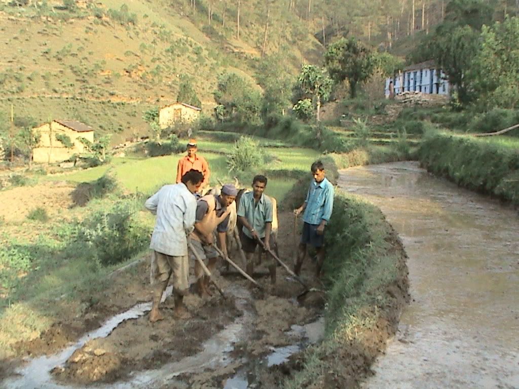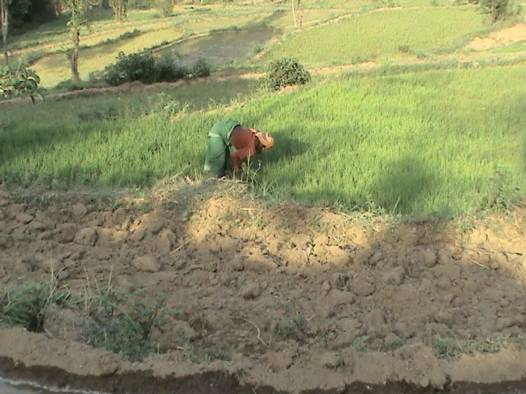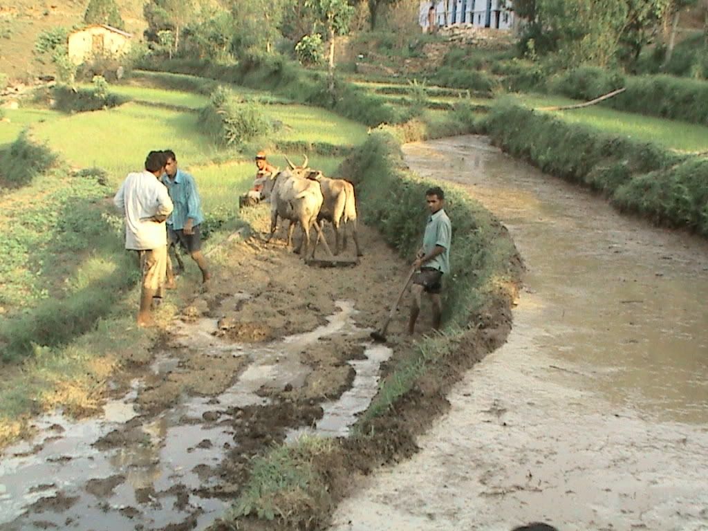 gaon ke log khaito ko ropai ke layek (saane)  ke baaad aram karte huye