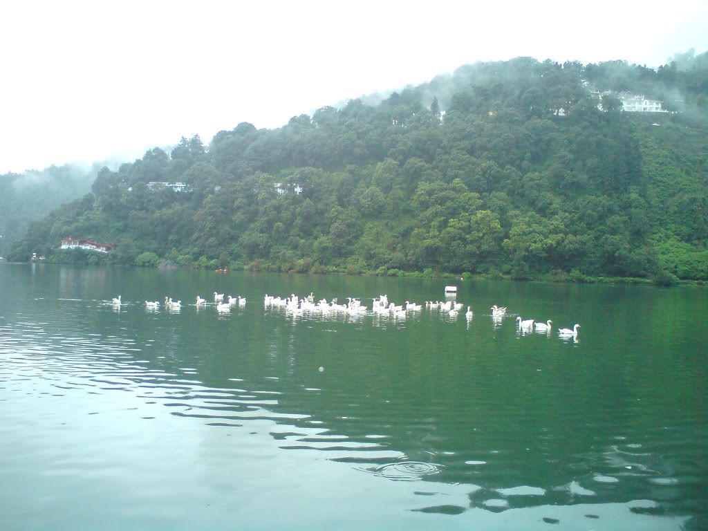 नैनीताल झील में बतखों के झुण्ड का एक छोटा सा नजारा ...............