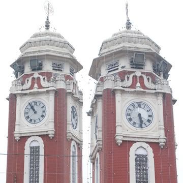 हरकी पैड़ी में घंटाघर की दो घडि़यां एक ही समय में अलग-अलग समय दिखा रही है।