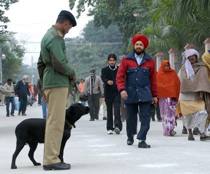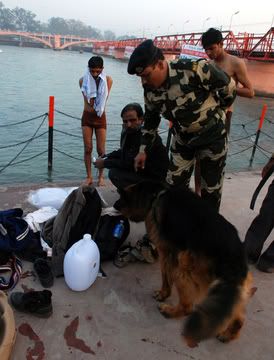 हर की पैड़ी पर तलाशी लेते स्निफर डाग।