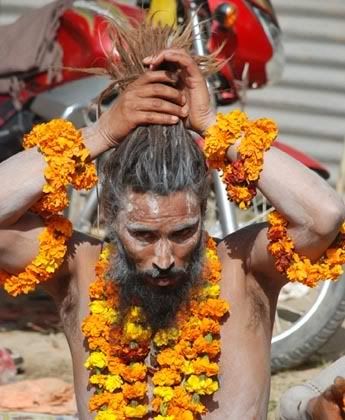पेशवाई के लिए केश संवारता साधु।