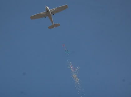 हरिद्वार में चल रहे महाकुंभ मेले में पेशवाई के दौरान आसमान से फूल बरसाता चार्टेड प्लेन।