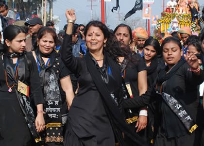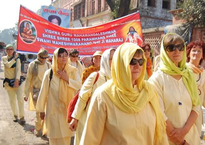 पेशवाई में शामिल हुए विदेशी श्रद्धालुओं की झांकी।