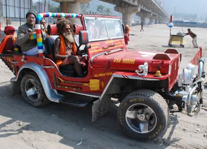 घूम तो लू गौरीशंकर द्वीप में जीप में घूमते साधु।