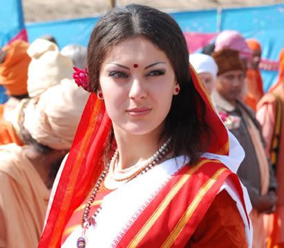 स्वागत की तैयारी नेपाल के राष्ट्रपति रामबरन यादव के स्वागत के लिए पायलट बाबा के आश्रम में खड़ी विदेशी युवती।