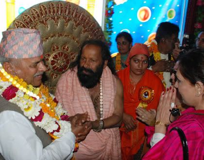भेंट पायलट बाबा से उनके कैंप में भेंट करते नेपाल के राष्ट्रपति रामबरन यादव।