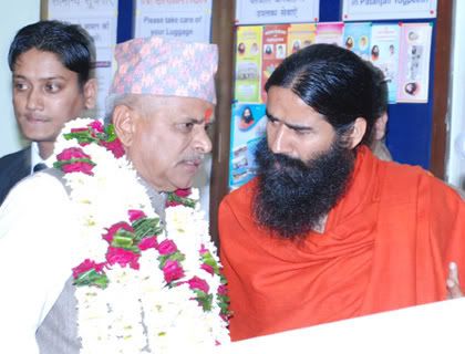 मंत्रणा पंतजलि योगपीठ में बाबा रामदेव से मंत्रणा करते नेपाल के राष्ट्रपति रामबरन यादव।
