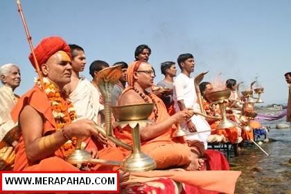 गंगा पूजन गंगा पूजन करते शंकराचार्य स्वरूपानंद सरस्वती के शिष्य।