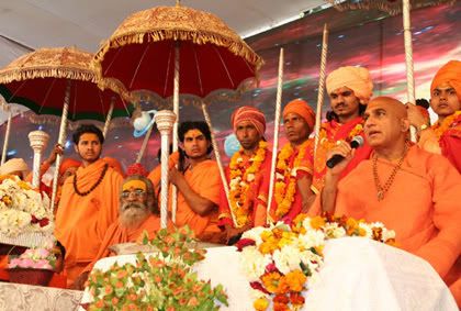 आज मैं ऊपर रथ पर आसीन ज्योतिष पीठाधीश्वर और उनके अनुयायी।