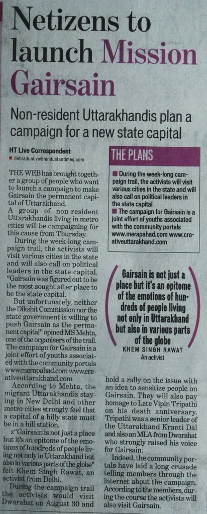 उत्तराखंड थै मिल्या अर यु पी से अलग हुया आज लग भाग ९ साल और ९ मैना हूँ वाला छन ! प्रगति का नौ पर यख मके ठुन्गी वाख्म नि सरकी .. विका नै पर पैसा खै खै को उंका त , ऊका ... ! उका पूरा परिवार का लुखुका लद्द्वाडा गप्प .... भैर आया छन खिरबोजई तरह !